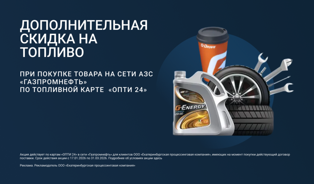 Начиная с 18.01.2026 (с момента прихода транзакции) по 31.01.2026 23:59 по всем топливным картам ОПТИ 24 текущего договора применяется дополнительная скидка к тарифу на АБ и ДТ.